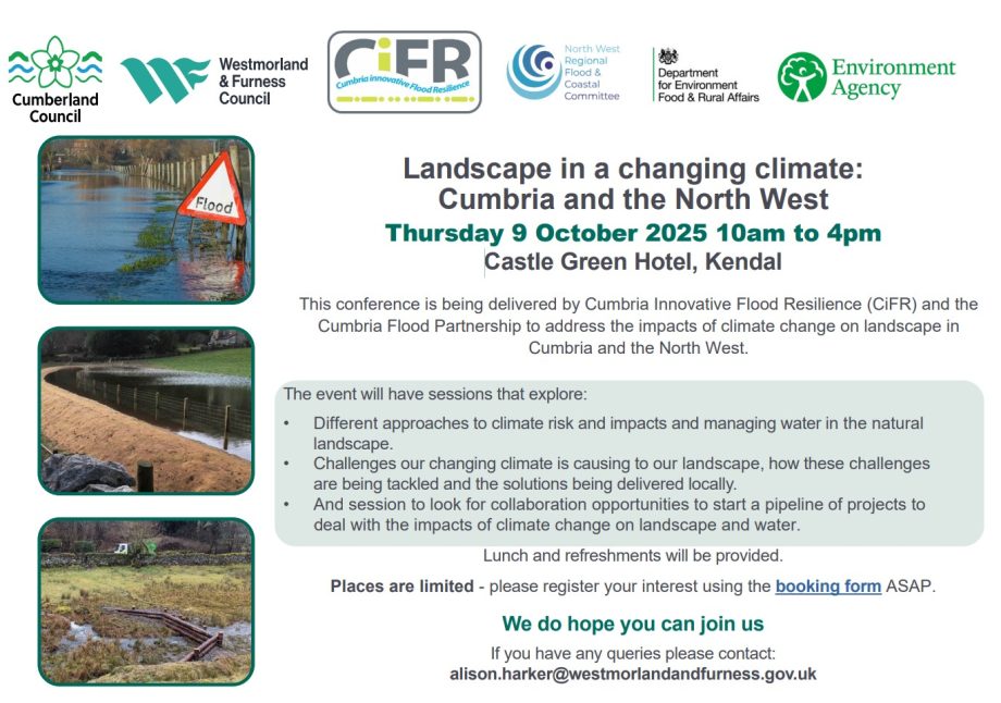 This conference is being delivered by Cumbria Innovative Flood Resilience (CiFR) and the Cumbria Flood Partnership to address the impacts of climate change on landscape in Cumbria and the North West.