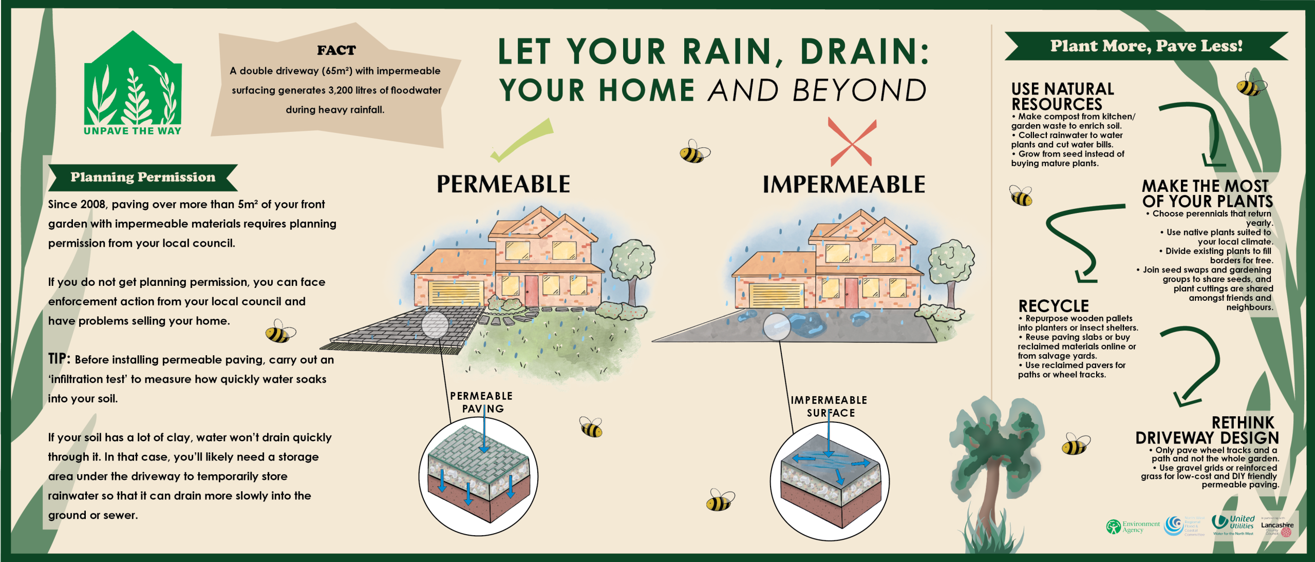 Unpave the Way have worked with two Liverpool Hope University Graphic Design Students to produce the ‘Let Your Rain, Drain’ infographic below.
